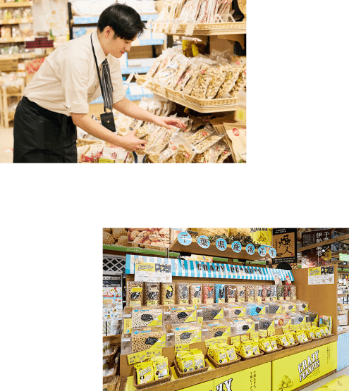 お店の好きな点は、北から南まで千葉の名産品を広く扱っていて、さらに千葉名産品を使った食事も楽しめる点です。ここにくれば千葉を存分に楽しめる「テーマパーク」のようだと思っています。 - 思い出に残っている、楽しかった·嬉しかったエピソードを教えてください。